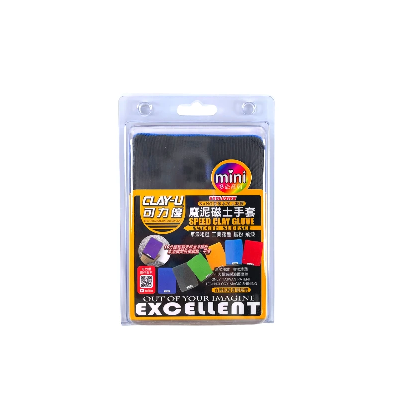 2.將可力優 魔泥磁土手套(mini多彩系列)用清水或洗車液充分浸濕,不需費力地堆抹全車(包括玻璃)過度施壓