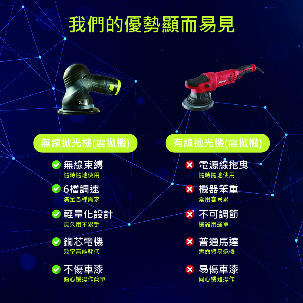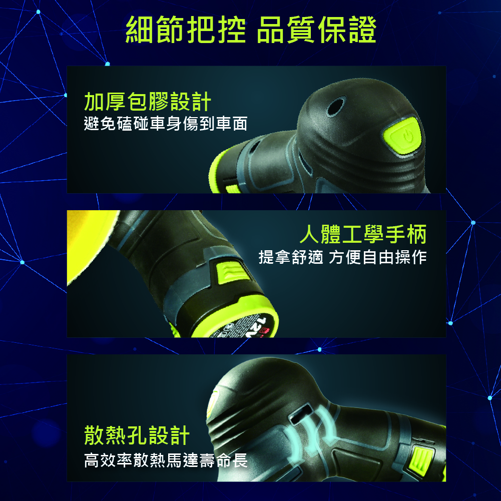 適合DIY族群的無線打蠟機,大功率12V鋰電池,附贈兩顆電池讓你安心打完一台車